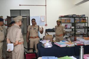 वरिष्ठ पुलिस अधीक्षक आजमगढ़ डॉ० अनिल कुमार द्वारा पुलिस कार्यालय आजमगढ़ की विभिन्न शाखाओं का औचक निरीक्षण किया गया। निरीक्षण के दौरान अभिलेखों के रख-रखाव, लंबित प्रकरणों की स्थिति एवं कार्यालय की कार्यप्रणाली की समीक्षा की गई तथा संबंधित अधिकारियों/कर्मचारियों को आवश्यक दिशा-निर्देश दिए गए।वरिष्ठ पुलिस अधीक्षक महोदय द्वारा लंबित प्रकरणों के शीघ्र एवं गुणवत्तापूर्ण निस्तारण तथा कार्यालयीय कार्यों को और अधिक प्रभावी एवं व्यवस्थित ढंग से संपादित किए जाने हेतु निर्देशित किया गया।