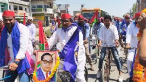 रैली में शामिल सैकड़ों कार्यकर्ताओं ने हाथों में नीले झंडे और बाबा साहब के पोस्टर लिए हुए थे। रास्ते में जगह-जगह स्थानीय लोगों ने फूल मालाओं से रैली का स्वागत किया। युवाओं में बाबा साहब के प्रति विशेष उत्साह देखने को मिला। रैली के दौरान “बाबा साहब अमर रहें” और “जय भीम” के नारे गूंजते रहे।