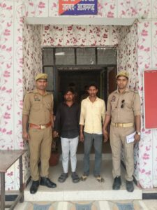 बरदह थाना के उ0नि0 उमेश चन्द यादव मय हमराह द्वारा रात्रि गश्त/चेकिंग के दौरान त्रिवेणी मोड़ पर संदिग्ध व्यक्तियों एवं वाहनों की सघन चेकिंग की जा रही थी। इसी दौरान एक मोटर साइकिल पर सवार दो व्यक्तियों को संदिग्ध प्रतीत होने पर रोककर तलाशी ली गई, जिसमें अभियुक्त अंकित यादव उर्फ मुनका पुत्र श्याम कन्हैया निवासी ग्राम दाउदपुर थाना केराकत जनपद जौनपुर उम्र लगभग 24 वर्ष के पास से 01 अदद नाजायज तमंचा .303 बोर व 01 मिस कारतूस .303 बोर तथा दूसरे अभियुक्त आकाश राजभर पुत्र शिव प्रसाद निवासी ग्राम गौरा डिहवा थाना गौराबादशाहपुर जनपद जौनपुर के पास से 200 रुपये नगद बरामद हुआ।