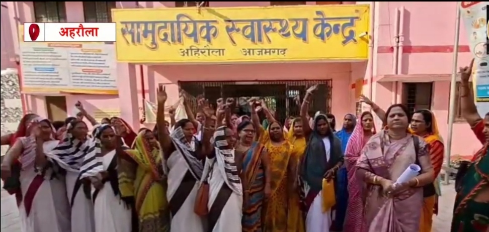 AZAMGARH News:कर्मचारियों पर दुर्व्यवहार का आरोप, आशा कार्यकर्ताओं का प्रदर्शन