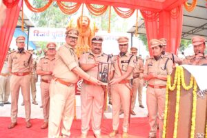 दीक्षान्त परेड समारोह में उद्घोषणा हेतु पुलिस उपाधिक्षक शशिमौली पाण्डेय एवं अभय तिवारी को सम्मानित किया गया।