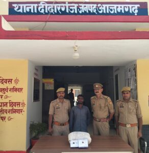 थाना दीदारगंज पुलिस द्वारा प्रभावी कार्रवाई करते हुए चोरी की घटनाओं का सफल अनावरण करते हुए एक शातिर चोर को चोरी गए माल के साथ गिरफ्तार किया गया है।