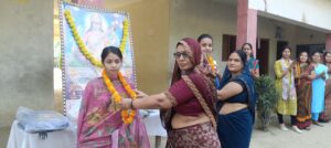 कार्यक्रम में कक्षा 12वीं की छात्रा अंजली यादव पुत्री रमेश यादव को 75% अंक प्राप्त करने पर तथा हाईस्कूल में 88.5% अंक लाने वाली मुस्कान सिंह पुत्री विंध्यवासिनी सिंह को माला पहनाकर पुरस्कार स्वरूप बैग देकर सम्मानित किया गया।