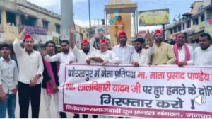 समाजवादी पार्टी के नेता माता प्रसाद पांडे हमले दोषियों को गिरफ्तार करने की मांग एवं प्रदेश की खराब कानून व्यवस्था को लेकर समाजवादी पार्टी के कार्यकर्ताओं में जोडदार प्रदर्शन किया। एवं सरकार विरोधी नारे लगाए। समाजवादी युवजनसभा के जिला अध्यक्ष, रणवीर यादव ने कहा कि गोरखपुर में नेता प्रतिपक्ष माता प्रसाद पांडे एवं अन्य लोगों पर हमला लोकतंत्र की हत्या है भाजपा सरकार में कानून व्यवस्था पूरी तरह से घ्वस्त हो चुकी है सत्ता संरक्षित अपराधी खुलेआम आपराधिक घटनाओं को अंजाम दे रहे हैं मुख्यमंत्री के गृह जनपद में नेता प्रतिपक्ष पर हमला होना उनकी गाड़ी का शीशा तोड़ना आपातकाल की याद दिलाता है। गोरखपुर में सपा के प्रतिनिधिमंडल को जेसीबी लगाकर रोकना अपराधियों के बुलंद हौसलों को उजगार कर रहा है, शासन प्रशासन आराधक तत्वों के सामने मत मस्तक है सपा नेता विजय रावत एवं जिला उपाध्यक्ष एनपी यादव ने कहा कि, प्रदेश की जनता भाजपा के भ्रष्टाचार अन्य अत्याचार से बेहद नाराज है भाजपा सरकार की पक्षी नेताओं को अपमानित कर रही है प्रदेश में आए दिन हो रही हत्याओं से जनता ने दहशत का माहौल है । जनता भाजपा की सुशासन से तंग आ चुकी है आने वाले विधानसभा चुनाव में जनता भाजपा को सत्ता से बेदखल करेगी। इस दौरान छात्र सभा जिला अध्यक्ष मनोज यादव ,लोहिया वाहिनी के जिला अध्यक्ष दिव्यांश श्रीवास्तव, हर केवल ,सूरज यादव ,मनीष, पवन मिश्रा, देवेश यादव, राजू पटेल, सूरज, धीरज प्रमुख रूप से मौजूद रहे।