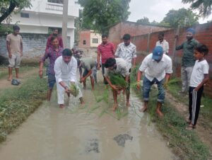 Azamgarh news:Villagers demonstrated by planting paddy on a broken road