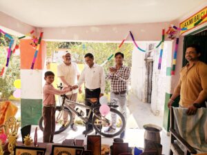 विद्यालय में सर्वश्रेष्ठ अंक प्राप्त छात्र को प्रधानाध्यापक ने दिया साइकिल