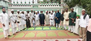 शिक्षण शिवाय पर्याय नाही, मुस्लिम तरुणांनी शिक्षित होऊन स्वतःला ,समाजाला व देशाला सक्षम बनावे असे प्रतिपादन नगरदेवळा जामा मस्जिद मरकजी इमाम आले मुस्तफा यांनी मुस्लिम समाजासमोर ईदुल फित्र चे भाषणात केले.आधी रोटी खाओ अपने बच्चो को पढाओ, आपल्या मुलांना शिक्षित करून सक्षम बनवा असे आवाहन केले. सोमवार रोजी नगरदेवळा येथे मुस्लिम बांधवाकडून शांतीपूर्ण रीतीने ईद-उल-फित्र (मिठी ईद)साजरा करण्यात आली. सकाळी आठ वाजता सर्व मुस्लिम बांधव जामा मस्जिद नगरदेवळा येथे ईदगाह साठी निघाले. ईदगाह येथून नमाज पठण केले. नंतर जामा मस्जिद इमाम मौलाना आले मुस्तफा यांनी जागतिक शांतता निर्माण होण्यास व आपला भारत देश विकसित व्हावा, जगामध्ये सुरू असलेले इजराइल फलसतीन युद्ध, रशिया युक्रेन युद्ध थांबवावे व जागतिक शांतता निर्माण व्हावी यासाठी प्रार्थना केली. मुस्लिम बांधवांनी एकमेकांना ईदची शुभेच्छा दिली. भारत सरकार कडून संसदेत प्रस्तुत करण्यात येणारे वकफ संशोधन विधेयक याला संवैधानिक,लोकशाही व शांतीपूर्ण रीत्याने मुस्लिम बांधवांनी आपल्या हाताला कालीफिती बांधून विरोध दर्शविला. भारत सरकारने वकफ संशोधन विधेयक मागे घेऊन मुस्लिम बांधवांना ईद ची स्वगात द्यावी असे आवाहन मुस्लिम पंच कमिटी चेअरमन नूर बेग व गरीब नवाज फाउंडेशन अध्यक्ष अफरोज रहीम शेख यांनी केले. यावेळी मौलाना आले मुस्तफा, मौलाना जमशेद, मौलाना इशतीयाक रजा, नूर चेअरमन, शेख अफरोज रहीम, जावेद रहीम, वसीम पटवे, मुसशताक खान, उमर बेग, वसीम शेख, सय्यद इमरान अली, गनी सेठ, अन्नू मेंबर, वसीम शेख, कामरान खान, खालील बेग, जुबेर खान आदी मान्यवर उपस्थित होते.