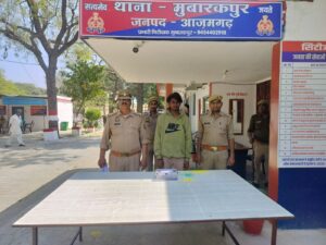 आजमगढ़, 15 मार्च (आर एन एस),मुबारकपुर थाने की पुलिस ने अवैध तमंचा व कारतूस के साथ अभियुक्त गिरफ्तार कर जेल भेज दिया। को चौकी प्रभारी बनकट उ0नि0 धर्मराज यादव मय हमराह द्वारा अभियुक्त *अनुराग पुत्र जयराम निवासी ग्राम छिछोरी थाना बिलरियागंज जनपद आजमगढ उम्र 19 वर्ष* को बनकट से फुलवरिया जाने वाले मार्ग पर निर्माणाधीन प्राइवेट अस्पताल के सामने से  समय करीब 19.30 बजे गिरफ्तार किया गया। गिरफ्तार अभियुक्त के कब्जे से एक अदद तमंचा .315 बोर व एक अदद जिन्दा कारतूस .315 बोर  बरामद किया गया। गिरफ्तारी व बरामदगी के आधार पर थाना स्थानीय पर मु0अ0सं0 107/2025 धारा 3/25 आयुध अधिनियम पंजीकृत किया गया। अन्य अग्रिम विधिक कार्यवाही प्रचलित है।