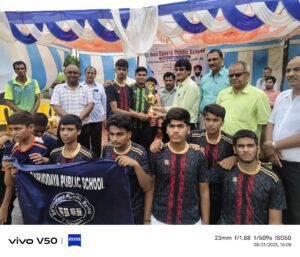 आजमगढ़:प्रयागराज के देव स्र्पोट्स पब्लिक स्कूल में आयोजित सीबीएसई क्लस्टर 5 स्पोर्टस टूर्नामेंट में सर्वोदय पब्लिक स्कूल, हरबंशपुर के अंडर-17 फुटबाल टीम ने कोच श्री उपेन्द्र कुमार दुबे के नेतृत्व में अपना बेहतरीन प्रदर्शन करते हुए 12 टीमों से सेमी फाइनल खेलते हुये फाइनल मैच में द्वितीय स्थान प्राप्त कर रजत पदक प्राप्त किया। यह उपलब्धि सर्वोदय पब्लिक स्कूल के लिए बहुत ही प्रशंसनीय है।