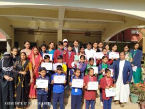 घोसी। संत नाबर्ट विद्यालय धरौली के प्रांगण मे समारोह आयोजित कर नेशनल लेवल साईंस ओलंपियाड मे राष्ट्रीय स्तर पर दूसरा स्थान पाने वाली कक्षा चार की वैष्णवीपांडेय को मेडल, सर्टिफिकेट देने के साथ अन्य प्रतिभागियों को प्रसस्तिपत्र देकर प्रिंसपल फादर लिबुनस के द्वारा सम्मानित किया गया।