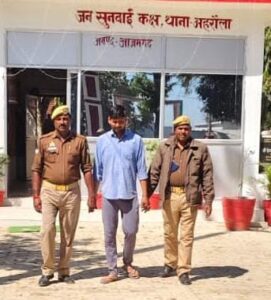 अहरौला/आजमगढ़:बीते 2 मार्च 2025 को समय लगभग 20:00 बजे रात को उप निरीक्षक धर्मेंद्र शर्मा वा उप निरीक्षक विश्राम गुप्ता ,हेड कांस्टेबल जयप्रकाश यादव, कांस्टेबल सौरभ राय और परीक्षित दुबे रात भ्रमण में पर निकले थे की हाँसापुर गढ़ा गांव के पास सड़क के किनारे करीब 08 बजे रात में एक युवक को पकड़ा गया जिसको चेक करने के बाद युवक के पास से 315 बोर का तमंचा और एक जिंदा कारतूस बरामद हुवा जिसने पूछताछ के दौरान अपना नाम राहुल मिश्रा उम्र 20 वर्ष पिता का नाम वेद प्रकाश मिश्रा निवासी ग्राम अज़ोरपुर थाना जैतपुर अंबेडकर नगर का निवासी बताया । जिसके बाद कानूनी कार्यवाही करते हुए थाना अहरौला की पुलिस के द्वारा नियमानुसार रिमांड के लिए माननीय न्यायालय के समक्ष भेज दिया गया भेज दिया गया ।