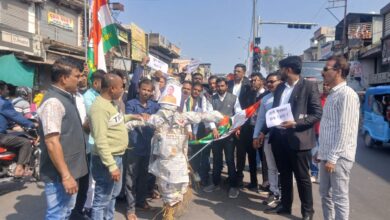Jabalpur news:प्रयागराज माघ मेले में शंकराचार्य स्वामी अविमुक्तेश्वरानंद के अपमान के विरोध में रांझी में युवा कांग्रेसियो ने सीएम योगी का फूंका पुतला