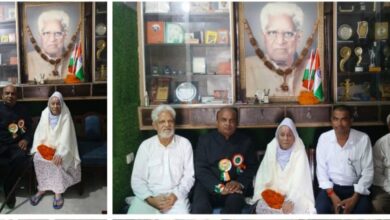 मऊ:तहसीलदार डा धर्मेंद्रपांडेय ने स्वतंत्रतादिवस पर स्वतंत्रतासेनानी की पत्नी को किया सम्मानित।