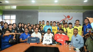 बिहार के खेल मंत्री सुरेंद्र मेहता ने पटना में भारतीय सेपक टाकरा टीम की जर्सी का किया अनावरण