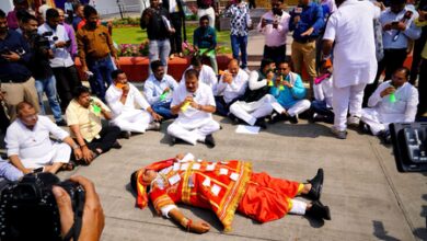 मध्य प्रदेश सरकार के खिलाफ कांग्रेस का अनूठा प्रदर्शन
