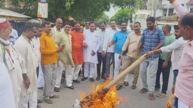 Azamgarh news:आजमगढ़ में भाजपा कार्यकर्ताओं का हंगामा,राहुल गांधी का फूंका पुतला