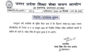 Azamgarh news:शिक्षा सेवा चयन आयोग ने जारी की प्रेस नोट 15 और 16 अक्टूबर की पीजीटी परीक्षा हुई रद्द