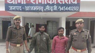 Azamgarh news :चोरी की मोटरसाइकिल, दो मोबाइल व नकदी के साथ पुलिस ने दो को किया गिरफ्तार