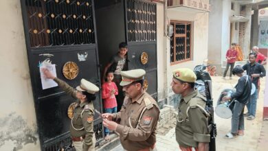 Azamgarh news :पुलिस ने फरार आरोपी के घर मुनादी करते हुए धारा 82 की नोटिस किया चश्पा