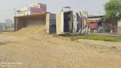Azamgarh news:अज्ञात कारणों से अनियंत्रित होकर पलटा ट्रक