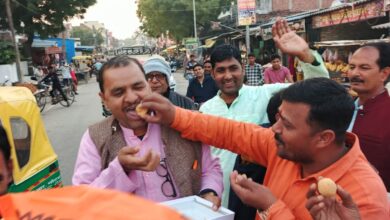 Azamgarh News: बिहार में भाजपा की प्रचंड जीत पर भाजपाइयों ने जगह जगह बाटी मिठाई और फोड़े पटाखे