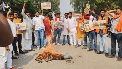 भाजयुमो ने फूंका पुतला,जताया विरोध