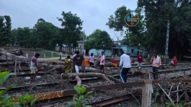 देवरिया :ट्रेन की पटरी पर पेड़ गिर जाने से ट्रेन या 2 घंटे रही बाधित आवा गमन हुआ बंद।
