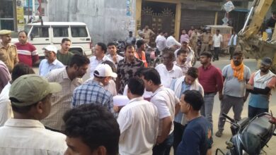 सीसी रोड पर निर्माणाधीन नाले से अतिक्रमण हटाने की कार्रवाई।