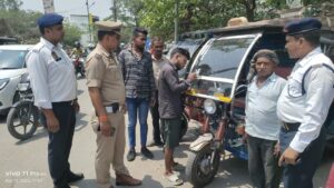 आजमगढ़।पुलिस अधीक्षक हेमराज मीना के निर्देशन में विशेष अभियान के तहत ई-रिक्शा चालकों का किया गया सत्यापन गया।मुख्यमंत्री उत्तर प्रदेश द्वारा माह अप्रैल में चलाए जा रहे ई-रिक्शा विशेष अभियान के अंतर्गत पुलिस अधीक्षक आजमगढ़ हेमराज मीना के निर्देशन में अपर पुलिस अधीक्षक यातायात विवेक त्रिपाठी के पर्यवेक्षण व टीएस आई धनजय शर्मा की टीम द्वारा आज दिनांक 11.04.2025 को जनपद आजमगढ़ के समस्त चौराहे, तिराहे, स्टैंड व थानों आदि पर ई-रिक्शा का सत्यापन किया गया, जिसमें ई-रिक्शा के आगे चालक का नाम व मोबाइल नंबर तथा ई-रिक्शा के पीछे वाहन स्वामी का नाम व मोबाइल नंबर लिखा गया है जिससे यात्रियों को किसी प्रकार की असुविधा न हो तथा ई-रिक्शा से हो रहे अपराध पर प्रभावी अंकुश लगाया जा सके।