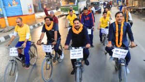 भदोहील भदोही साइकिलिंग क्लब के तत्वाधान में राष्ट्रीय राजमार्ग बड़ा चौराहा से पर्यावरण और स्वास्थ्य जागरूकता अभियान साइकिल यात्रा निकाली गई।