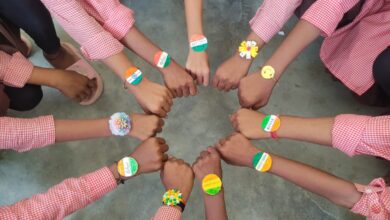 आजमगढ़:हर घर तिरंगा के तहत पूर्व माध्यमिक विद्यालय पटवध कौतुक पर बच्चियों द्वारा बनाई गई राखी और रंगोली