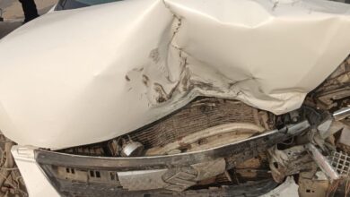 Mau accident:फोरलेन पकड़ीमोड़ के पास व्यक्ति को बचाने में कार घुसी ट्रेलर मे,दो घायल