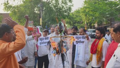 आजमगढ़:भाजपा नेताओं ने नेशनल हैंराल्ड घोटाले के मामले में कांग्रेस नेता राहुल गांधी का फूंका पुतला ,भाजपा नेता बोले भ्रष्टाचारियों का यही हर्ष होगा