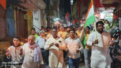 आजमगढ़:पहलगाम में कायरतापूर्ण आतंकवादी हमले के विरोध में व्यापारियों ने निकाला कैंडल मार्च, दी गई श्रद्धांजली