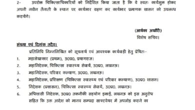 उत्तर प्रदेश शासन स्वास्थ्य चिकित्सा द्वारा दो चिकित्सा अधिकारियों के कार्य क्षेत्र में किया गया परिवर्तन