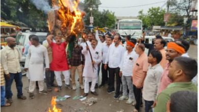 आजमगढ़ में भाजपाजनों ने AIMIM प्रदेश अध्यक्ष शौकत अली का पुतला फूंका