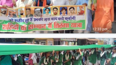 देवरिया:अमर शहीद पंडित राम प्रसाद बिस्मिल के समाधि स्थल से 121 मीटर लंबी तिरंगा यात्रा निकल गई