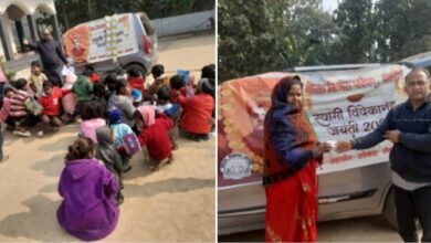 Deoria news, बरहज क्षेत्र के कपरवार गांव में, स्वामी विवेकानंद जयंती पर शिक्षण सामग्री किया गया वितरण