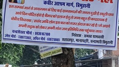 Azamgarh news:निजामाबाद मे ग्रामीणों ने रोड नहीं तो ओट नहीं का लगाया बैनर,निजामबाद से कबीर आश्रम त्रिमूहानी की जर्ज़र सड़क को बनवाने की किया मांग