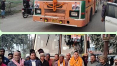 Deoria news, शहीद एक्सप्रेस बस का लोगों ने जगह-जगह चौराहों पर किया स्वागत