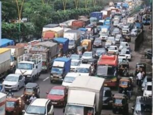 Bhiwandi news:सरकार जी कुछ तो करो मुंबई नासिक महामार्ग क्रमांक-३ पर यातायात जाम से लोग परेशान