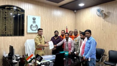 Gazipur news:माता दुर्गा प्रतिमा विसर्जन के समय डीजे पर अश्लील गानों को लेकर विहिप और बजरंग दल ने सौंपा एसपी को ज्ञापन